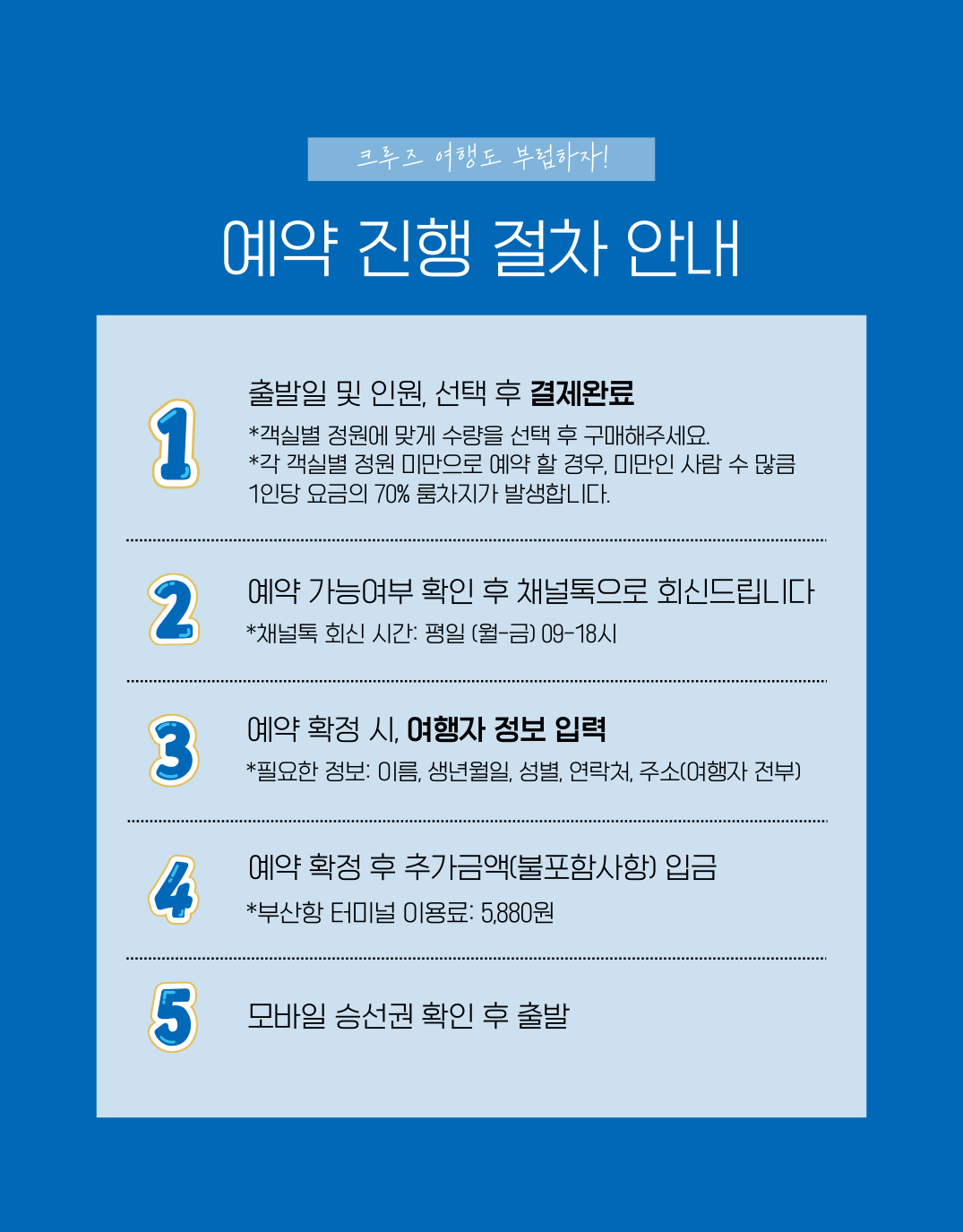 문의 주시면 잔여객실 조회 → 가능 일정 안내 → 예약 절차까지 담당자가 자세히 도와드립니다.